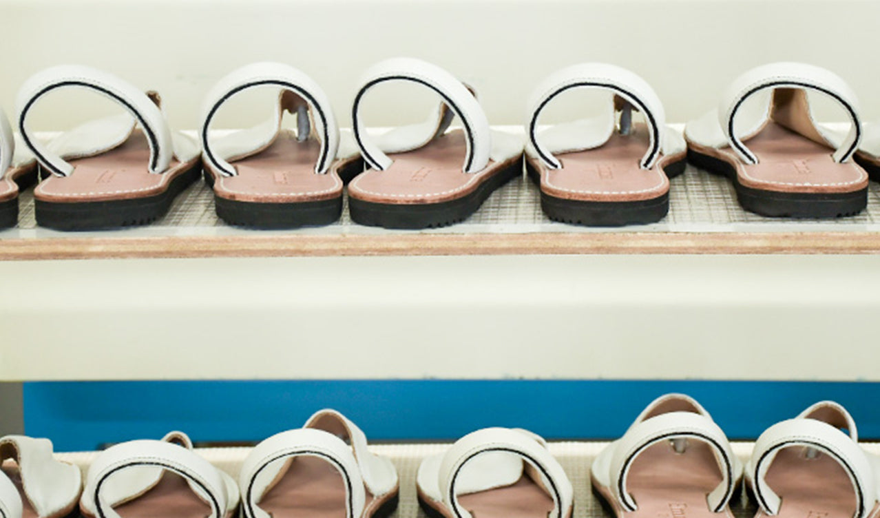 倉敷の自社工場で職人が1足ずつ時間をかけて作っています。
