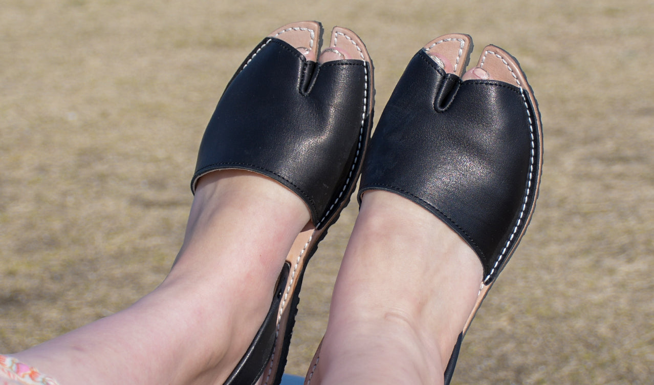 スペイン・メノルカ島発祥の伝統的な履物「アバルカサンダル」より着想を得て誕生した足袋型サンダル「EMMA(エマ)」。履くほどに馴染み、太陽や潮の香りの風を感じさせてくれる艶のある一足。