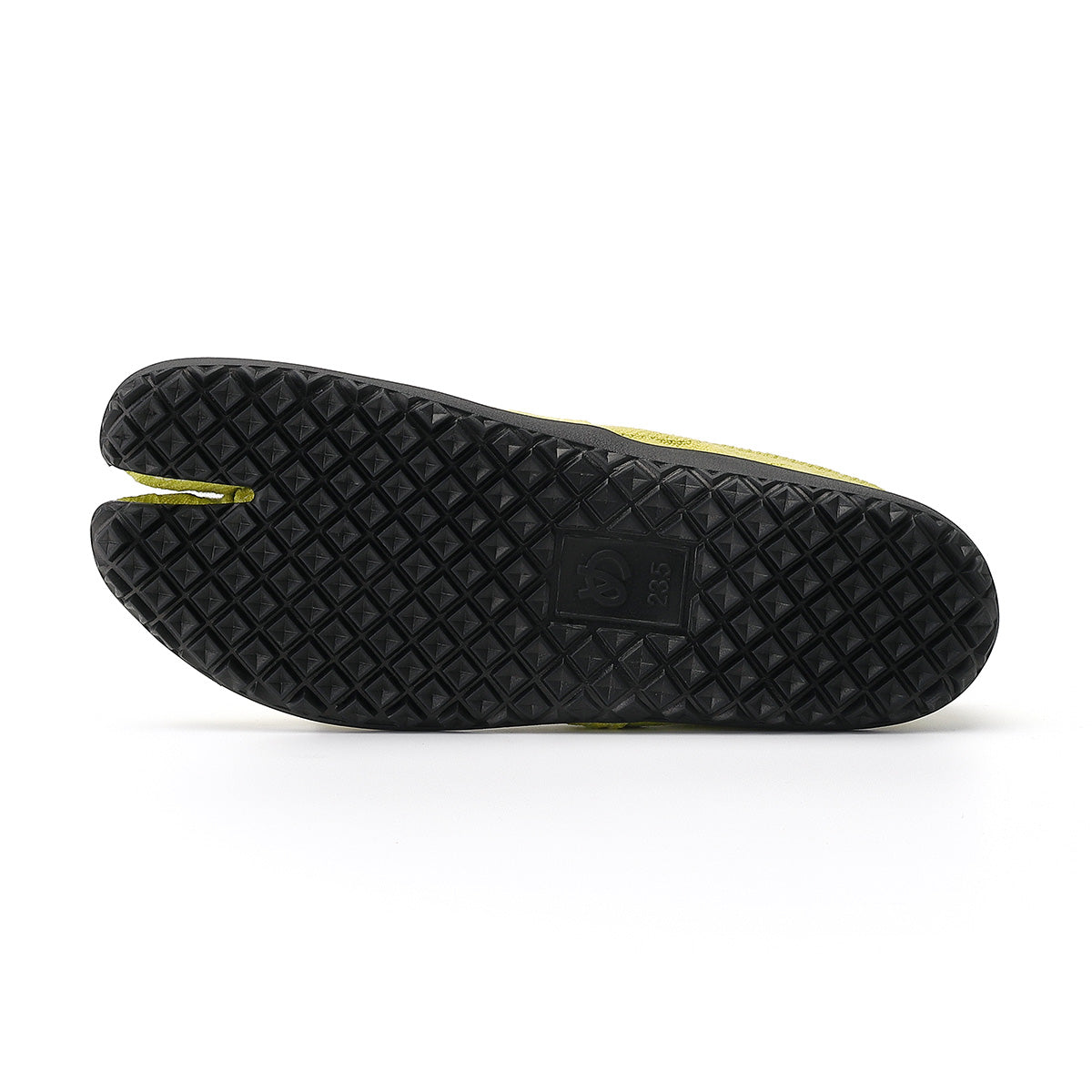 足袋型コンフォートシューズ「たびりら」をベースとして中敷きに導電性の糸を縫い込み、さらに導電配合のゴム底を使用することでアーシング機能を実現しています。アッパーは倉敷の帆布メーカータケヤリ社製の生地を使用し、インソールは肌あたりのよい綿100%刺子を使用。裸足のような履き心地を実感できる1足です。