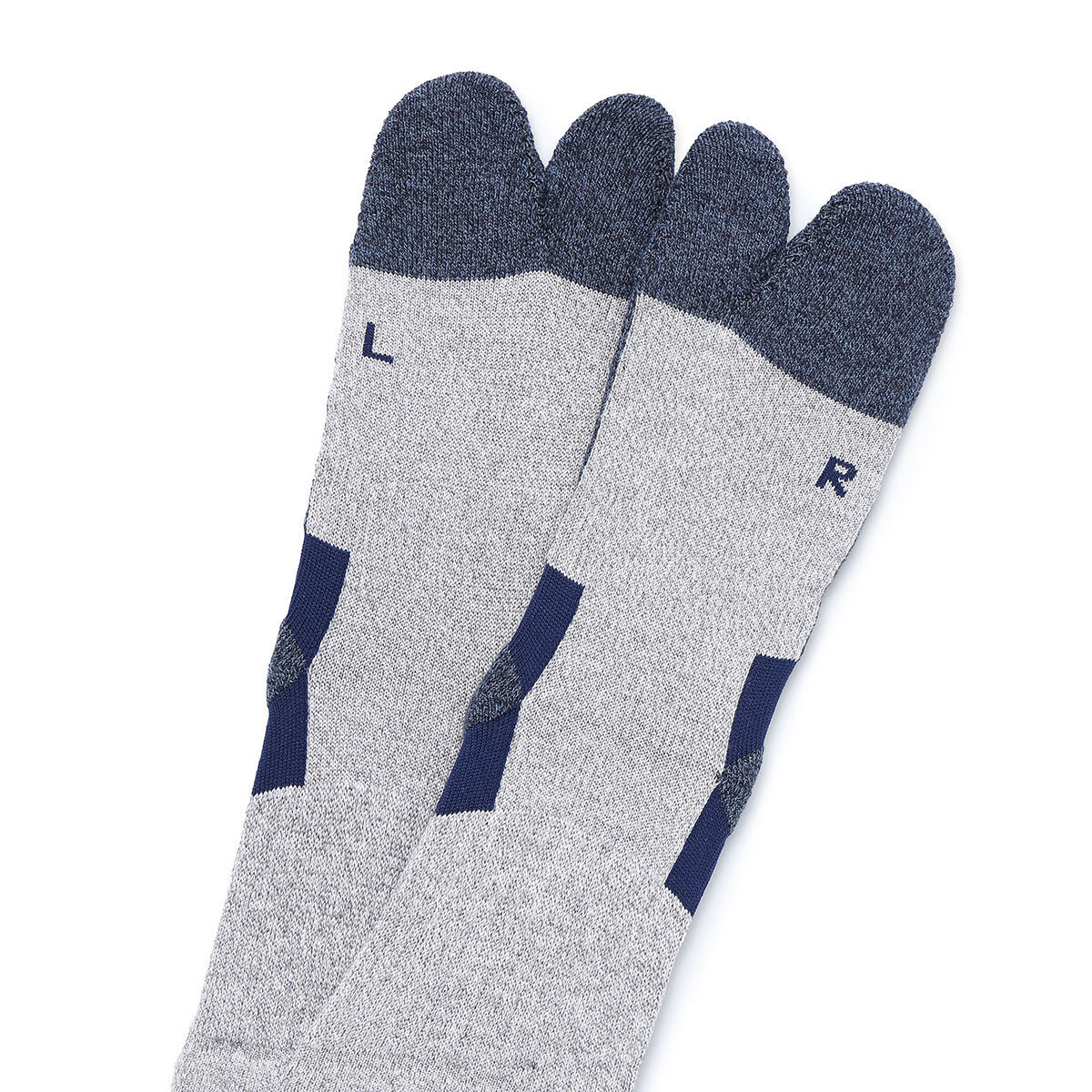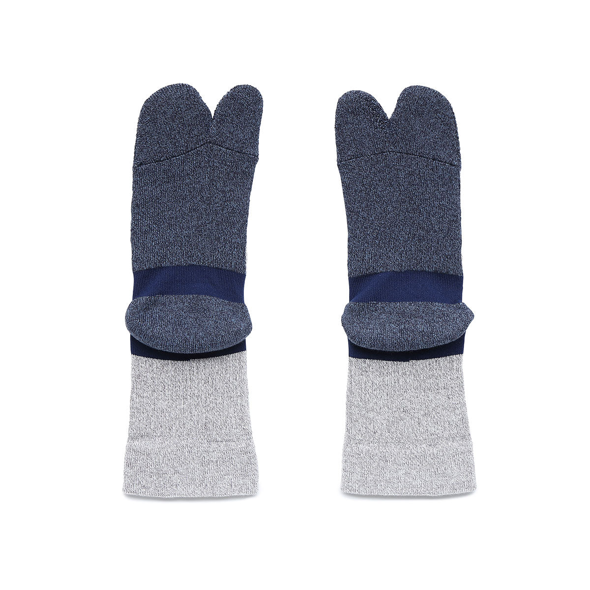 かかとにテーピング編みを施した、日常の動きをサポートするタビ型ソックス。かかと以外は極力締め付けを抑えた作りで、しっかりとした厚みながらも動きやすさと履きやすさを追求した作りに。また、足底全体はパイル編みになっているのでクッション性も兼ね備えています。コットンがベースになっているので通年を通して履いていただけます。