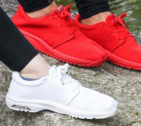 - 濃色の生地を使用している製品では汗や水で濡れた場合に色落ちや、淡色の表生地または靴下に色移りを生じることがあります。