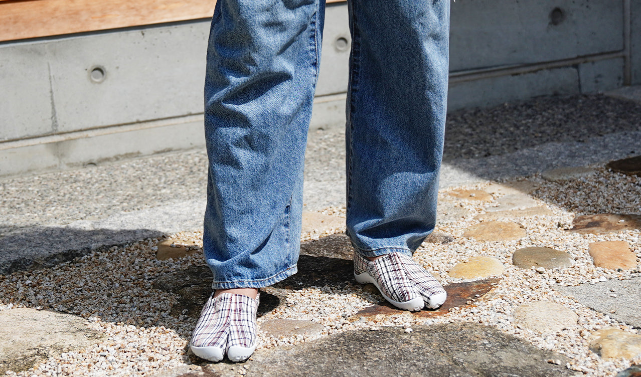 歩きやすくて足にいいtabiRela(たびりら)が日本全国の伝統生地を巡るSANCHIシリーズ。日本が生んだ天然の快適素材である徳島県の〝阿波しじら織り〟に着目したモデルです。