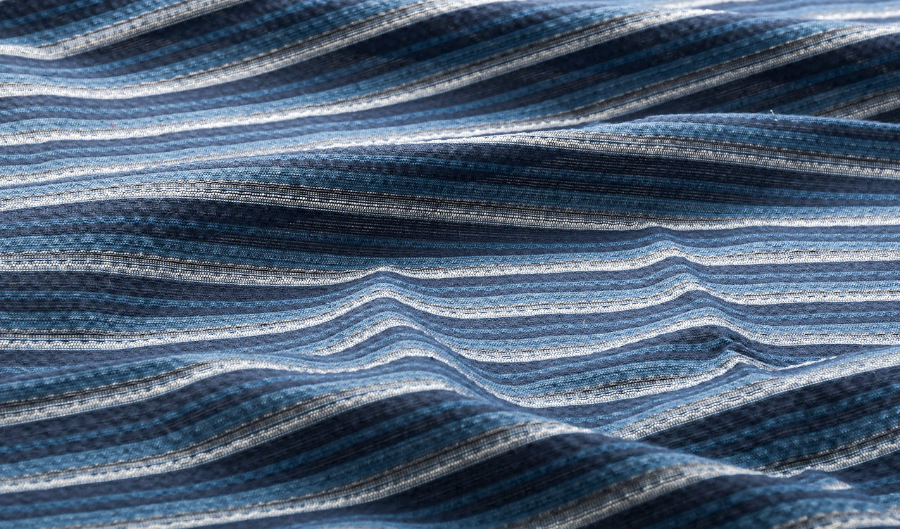 凸凹が生む陰影が特徴的で、肌離れが良く、高温多湿の日本の気候に合った織物です。多種多様な柄も魅力的で、伝統的なものでありながらもとてもモダンに見えるパターンも数多くある奥深い織物です。