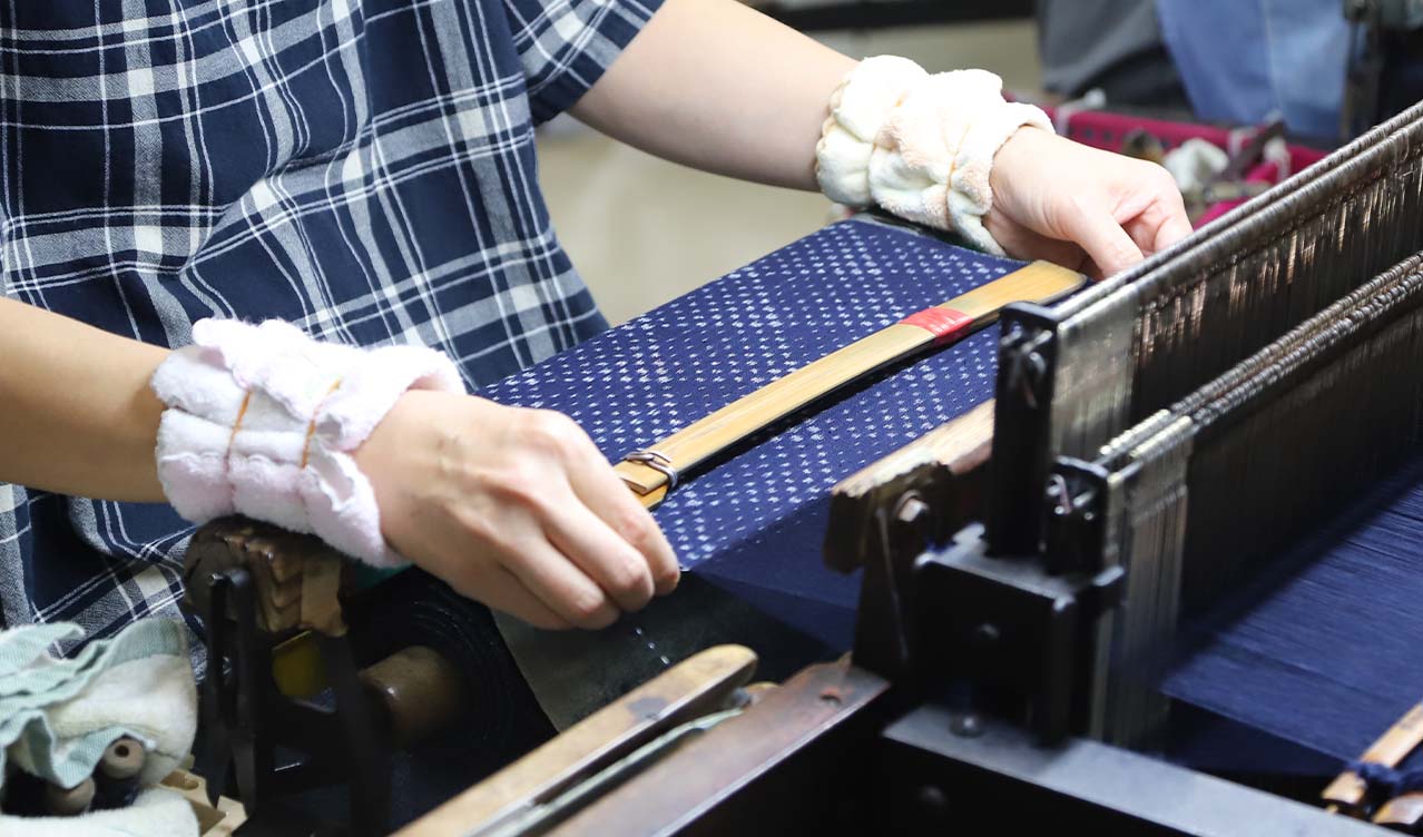 日本三大絣の中の一つでもある久留米絣。伝統的な庶民の生地として丈夫なことはもちろん、手織りの生地は糸が丁寧に打ち込まれ、1本1本に過度な負担をかけないため、丈夫ながらもしなやかに風合いに仕上がるのが特徴です。
